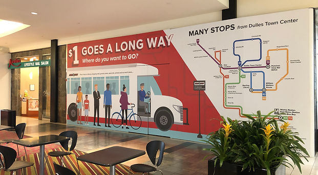 Loudoun County needed a visual identity and a myriad of collateral for their new public transport initiative, including a map, bus wraps, and print material to feature in local malls. I designed the whole look & feel of this campaign in collaboration with the creative team at Sagetopia. With the help of local printers I designed and created all of our print material — including the map, which I put together using a spreadsheet of bus stops provided by our client!